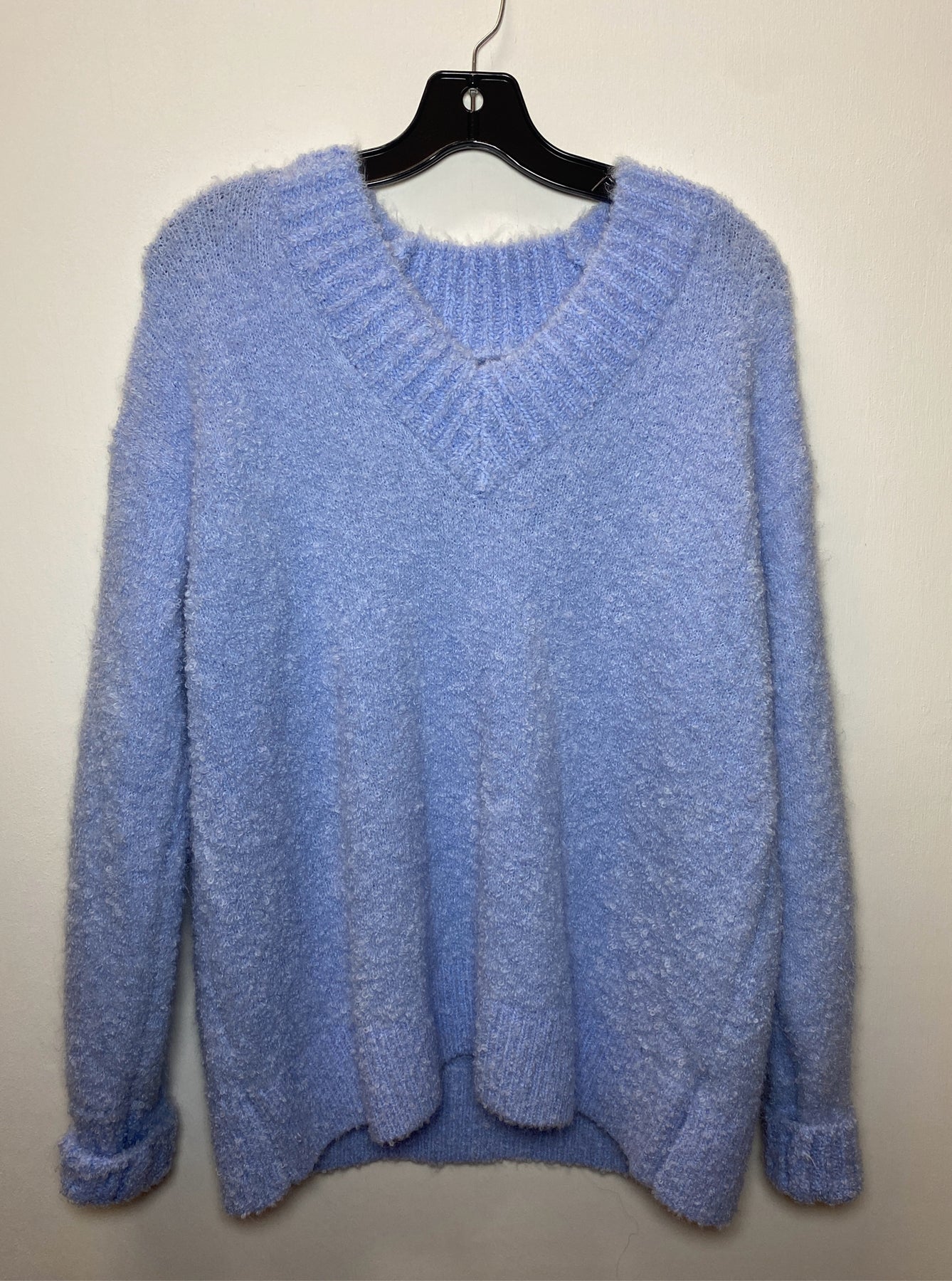 Fuzzy blue knit sweater v neck