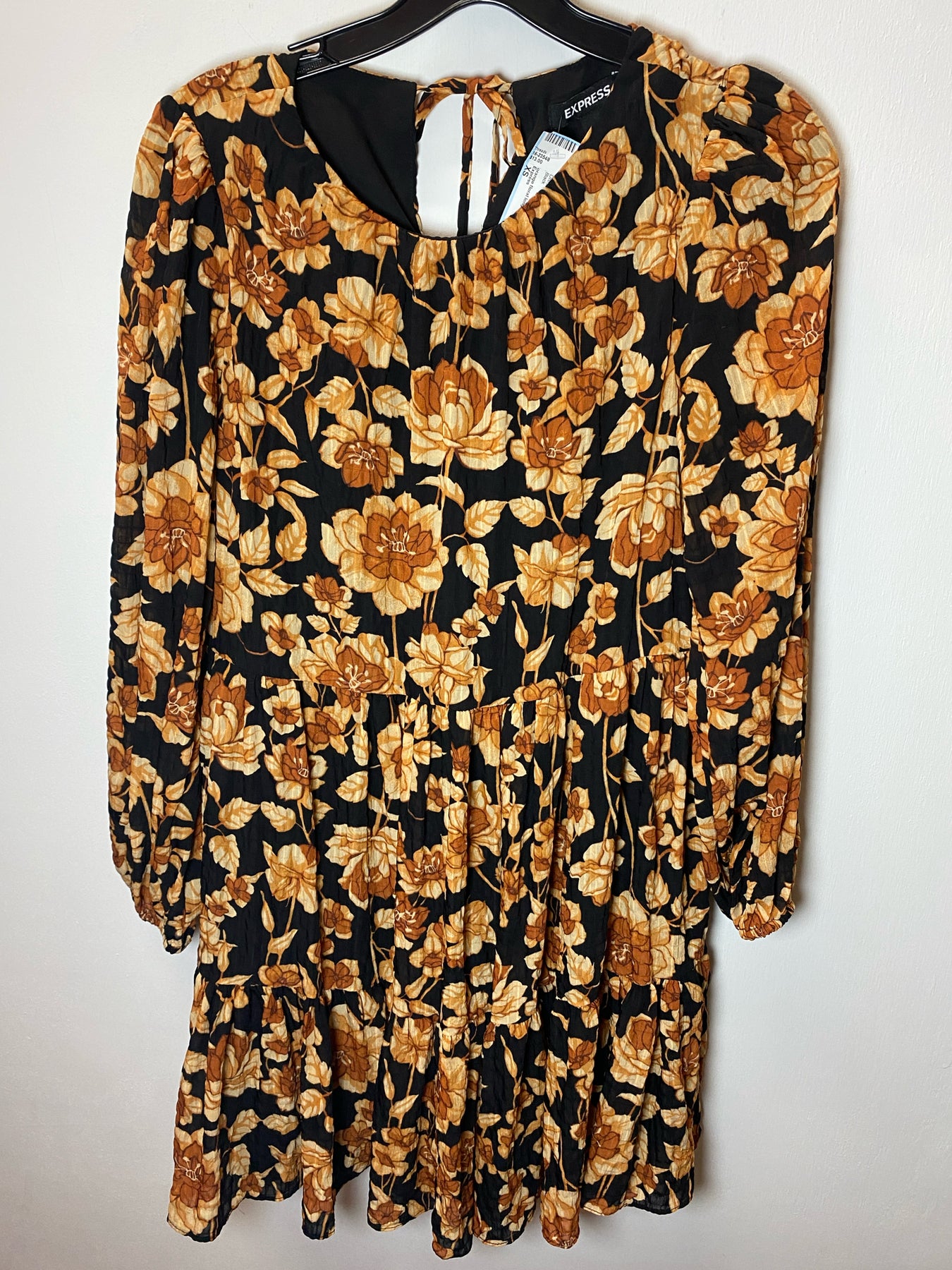 Express XS Black & Oramge Floral Long Sleeve Dress