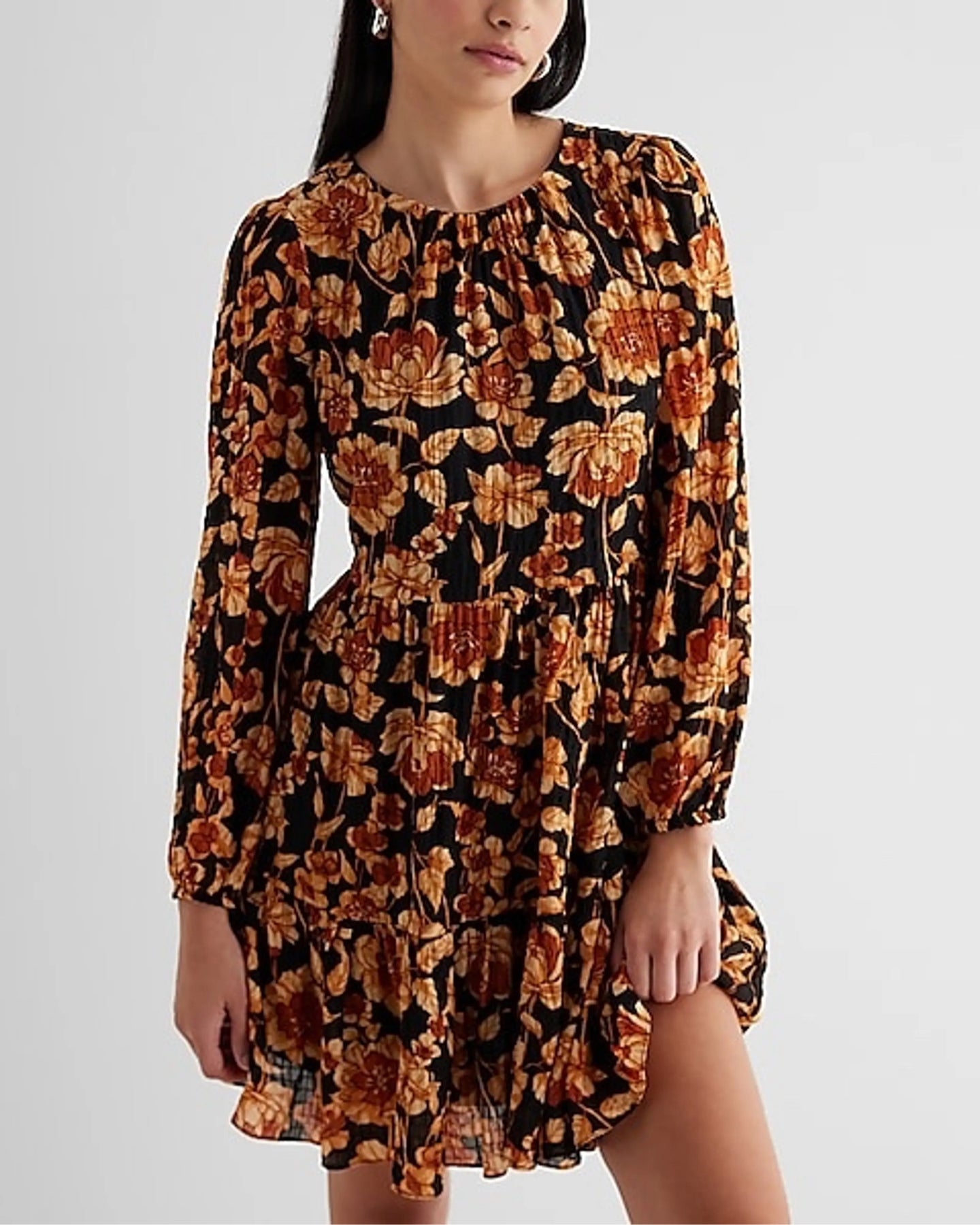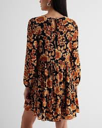 orange floral long sleeve mini