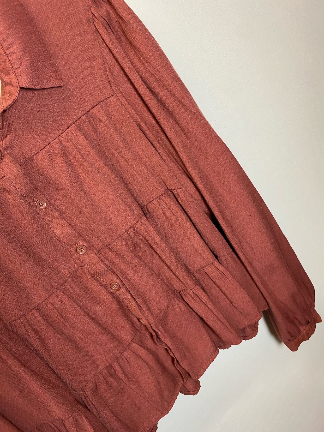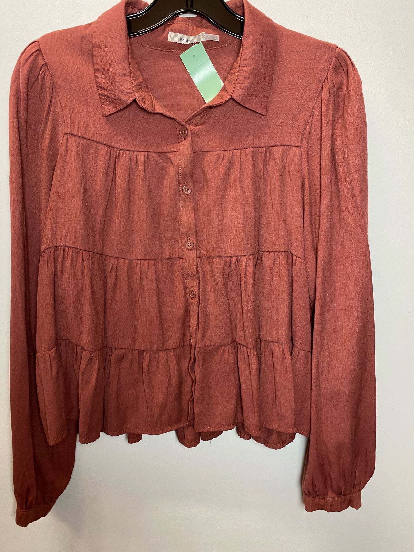 Mi Ami Large Red Tiered Button Down Blouse Top