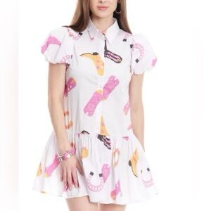 NEW Cavendar's Small White Puff Sleeve Boot Dress