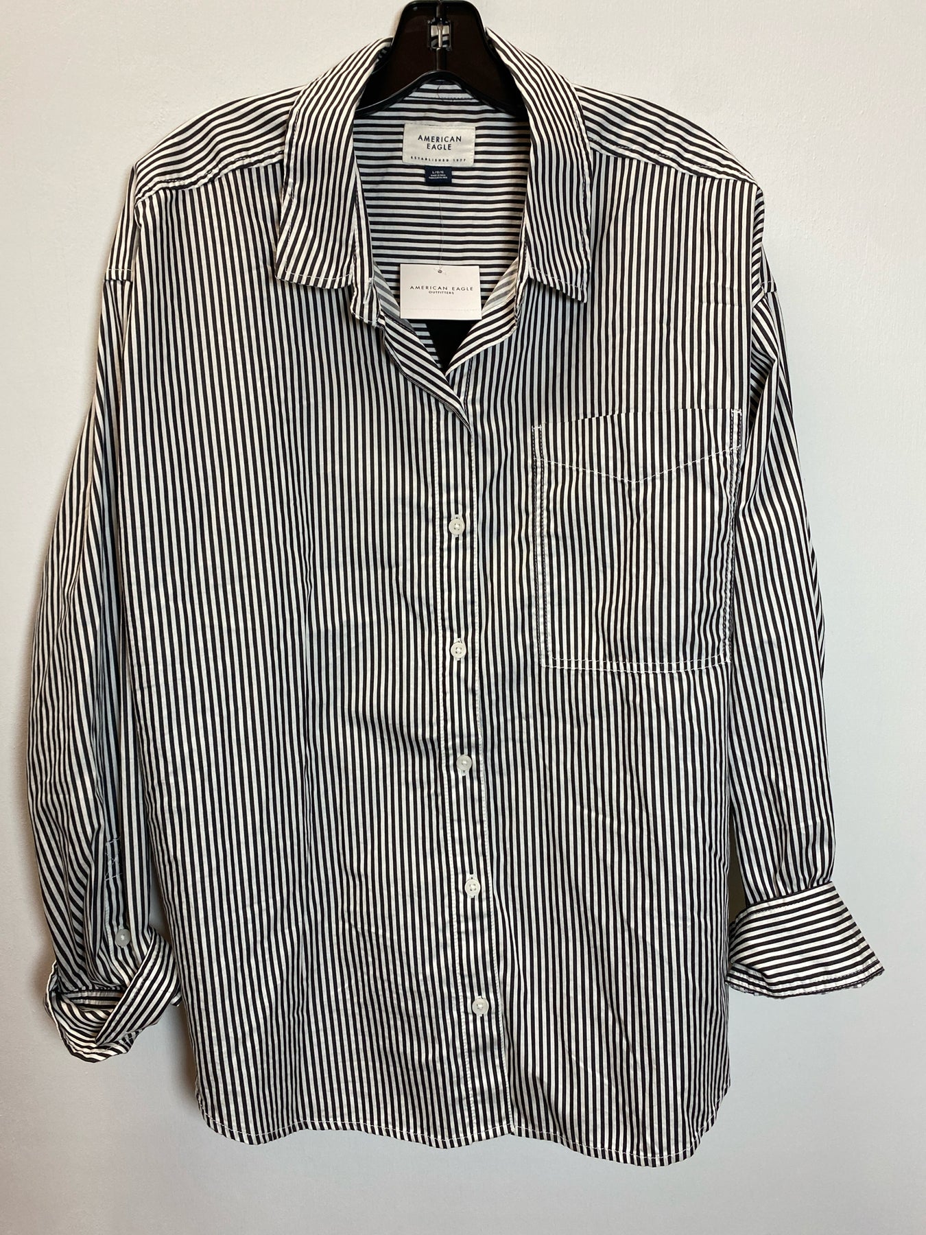 NEW American Eagle Large B&W Striped Shirt