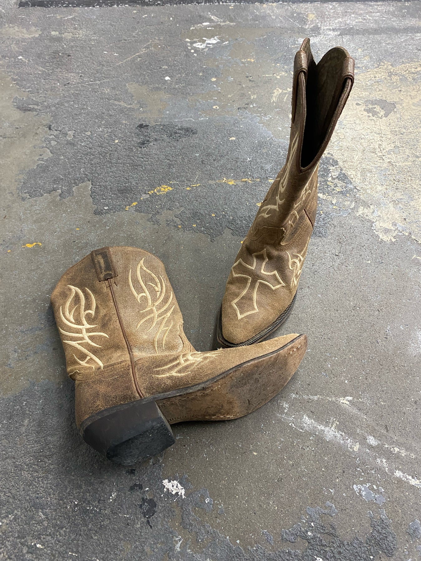 Justins Size 9 1/2 Distressed Faith Cross Boots