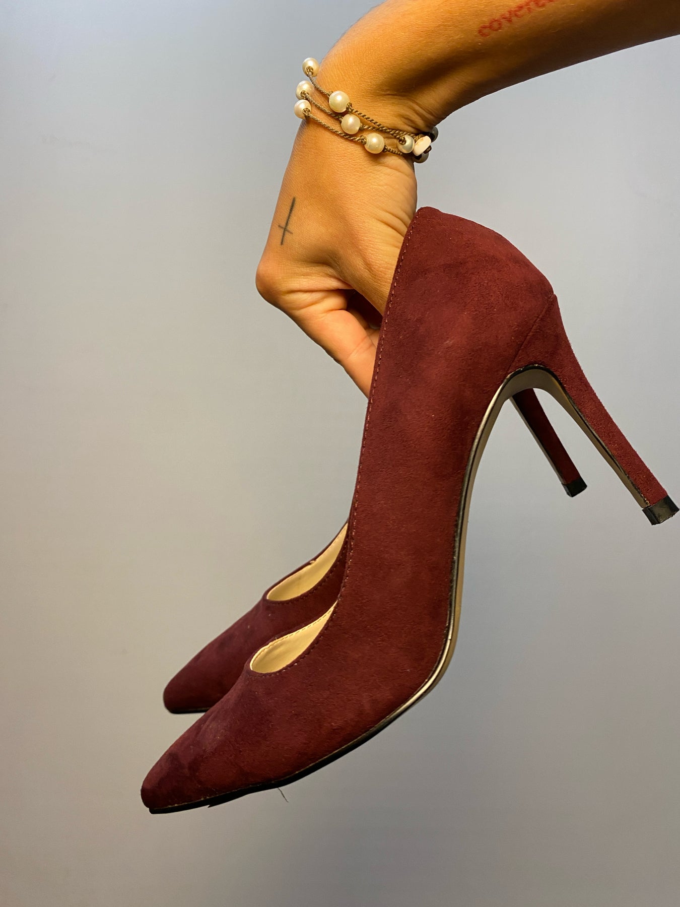 suede point heel