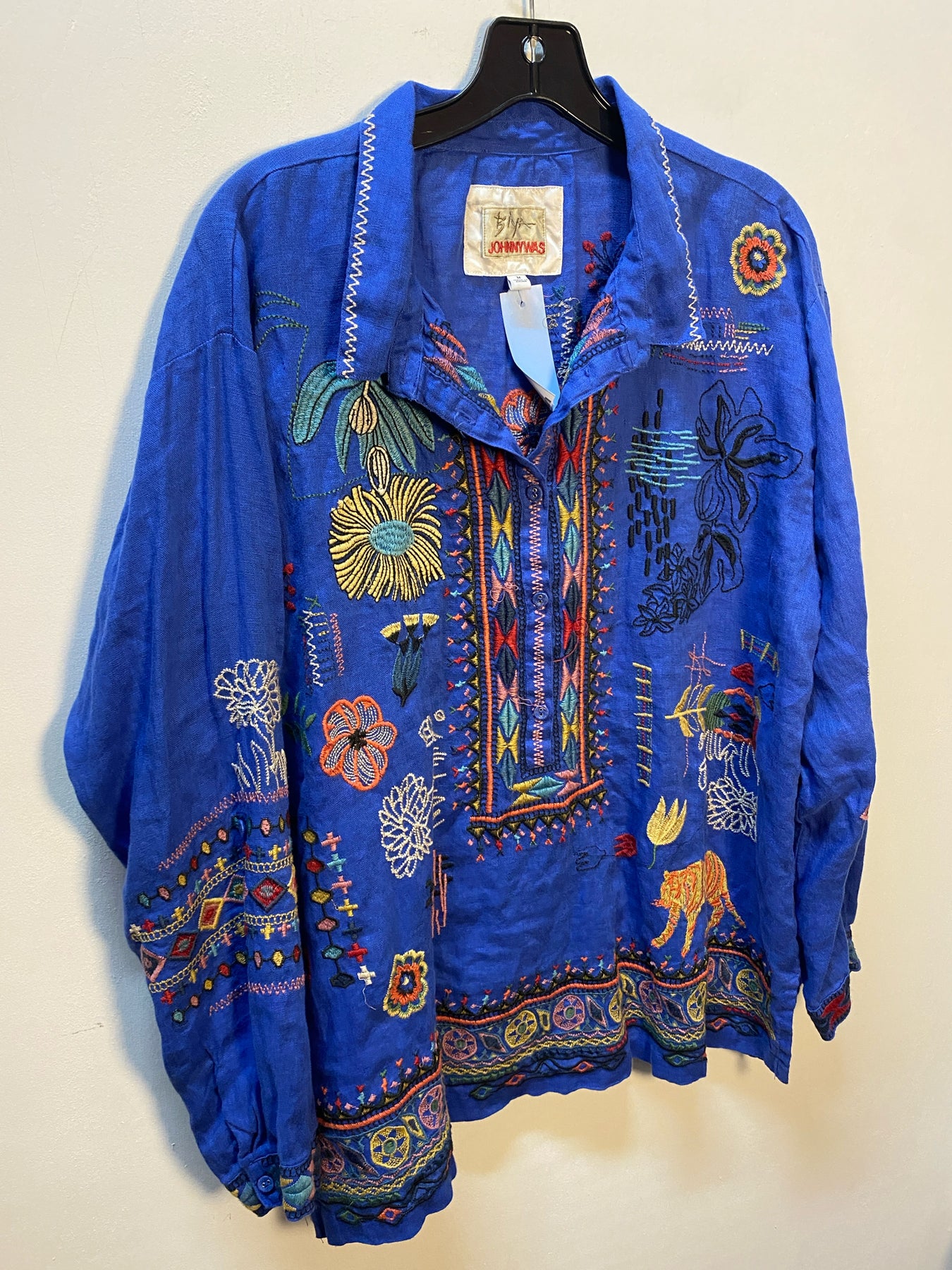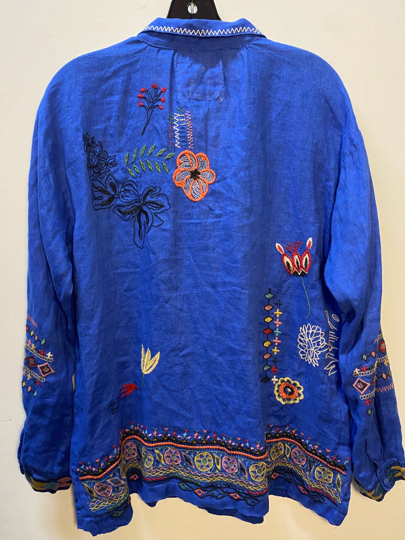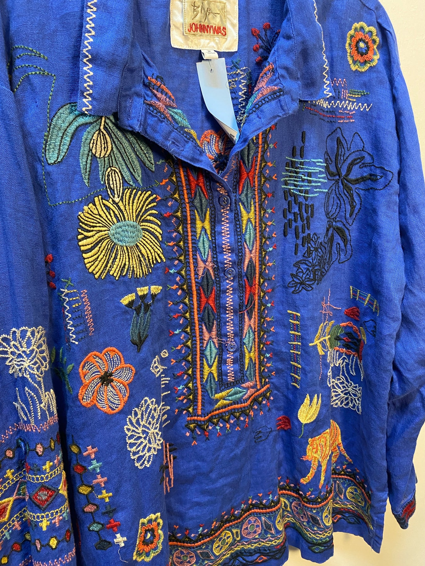 Johnny Was Simmie Blouse Medium Blue Embroidery Blouse