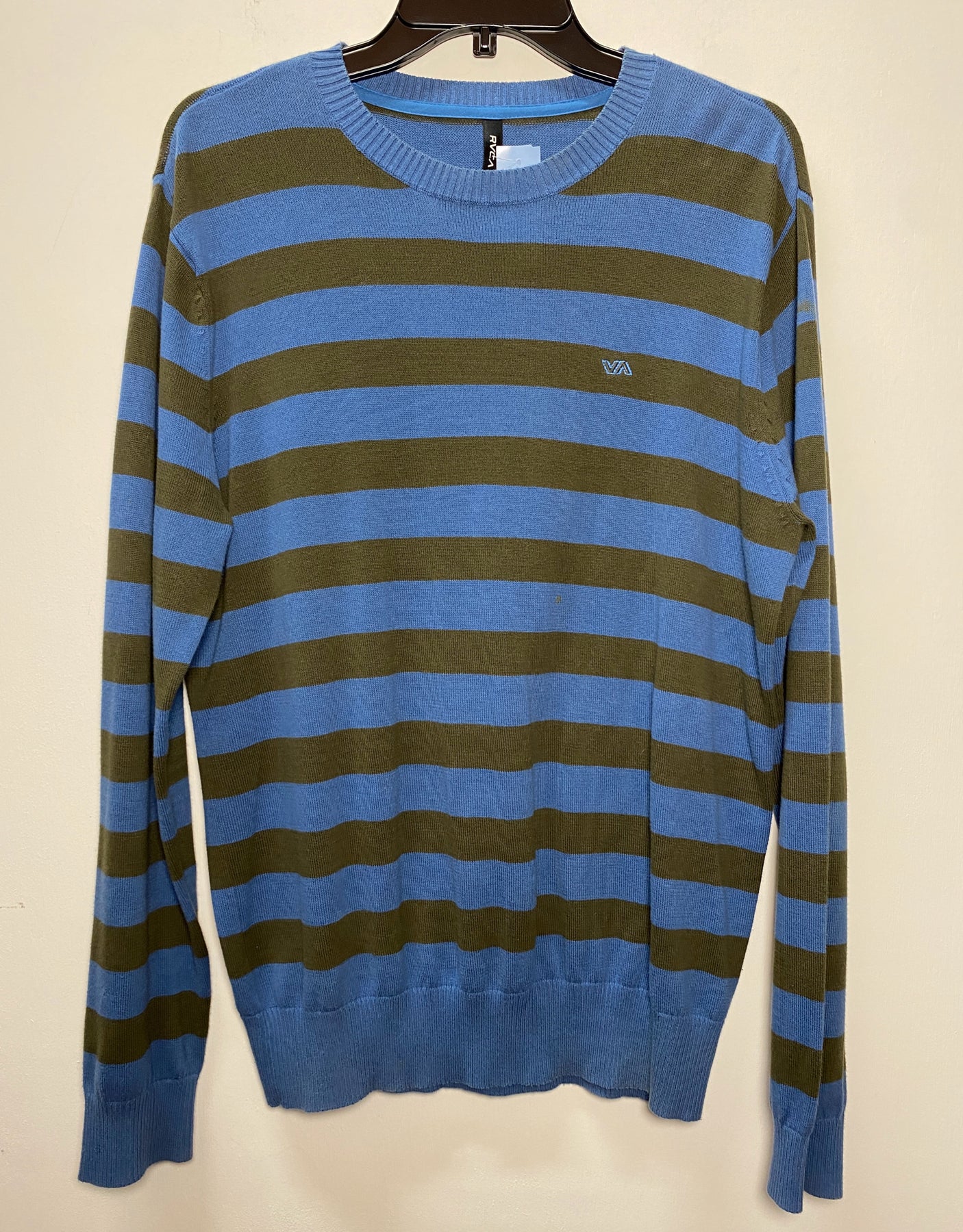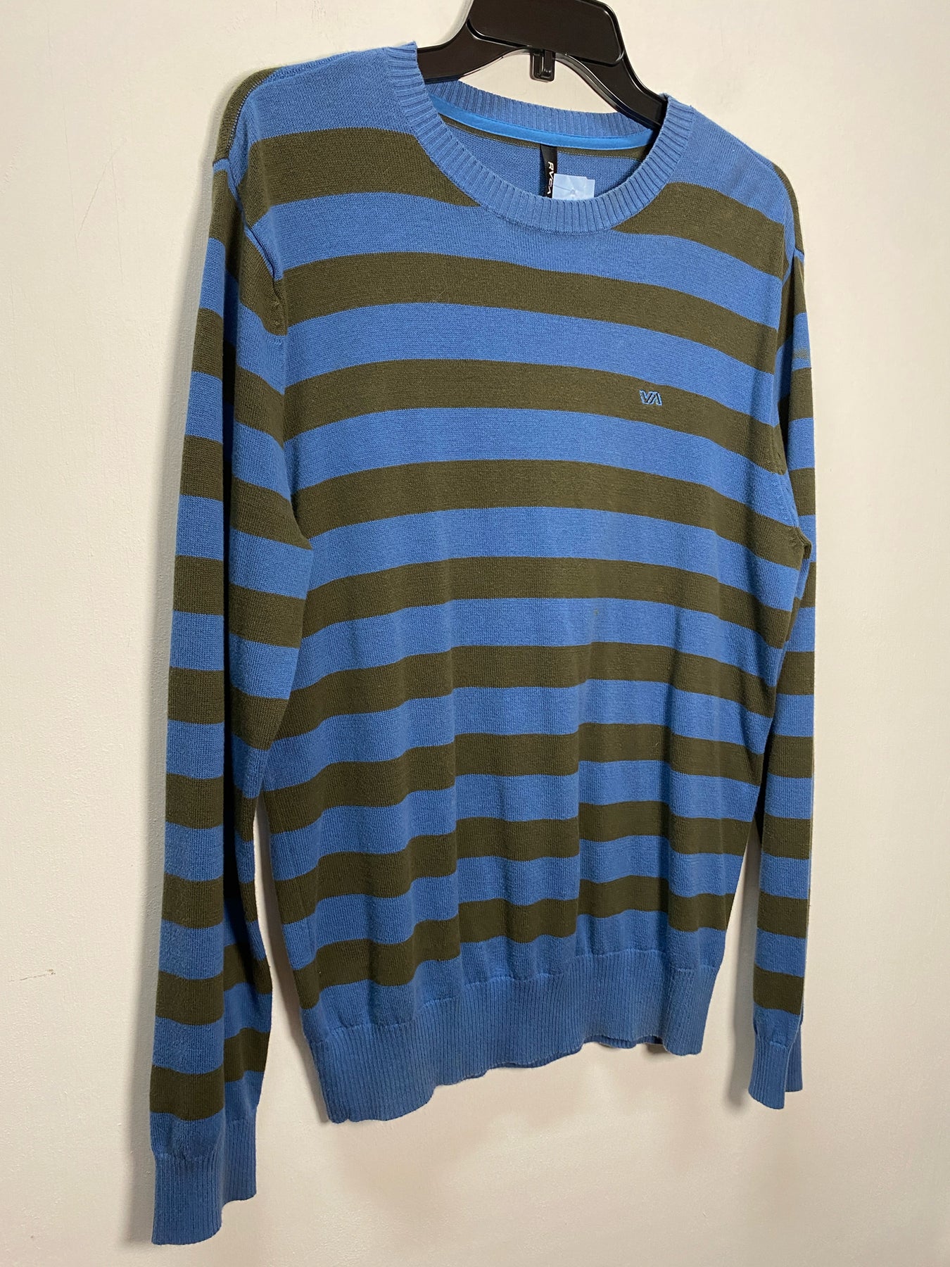 RVCA Large Long Sleeve Blue & Green Stripped Knit Shirt